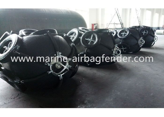 Pneumatic fender is constructed with a cylindrical air-filled body and a Chain Tyre Net around it.